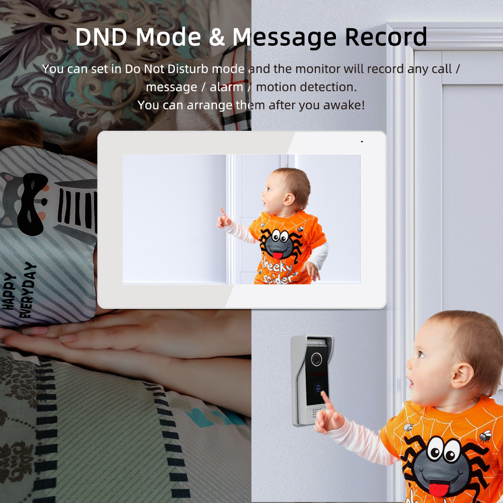 When monitor in DND mode,the system will record any call / message / alarm / motion detection.You can arrange them after you awake!