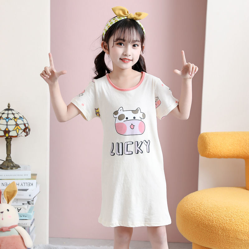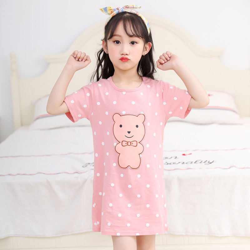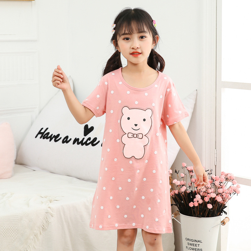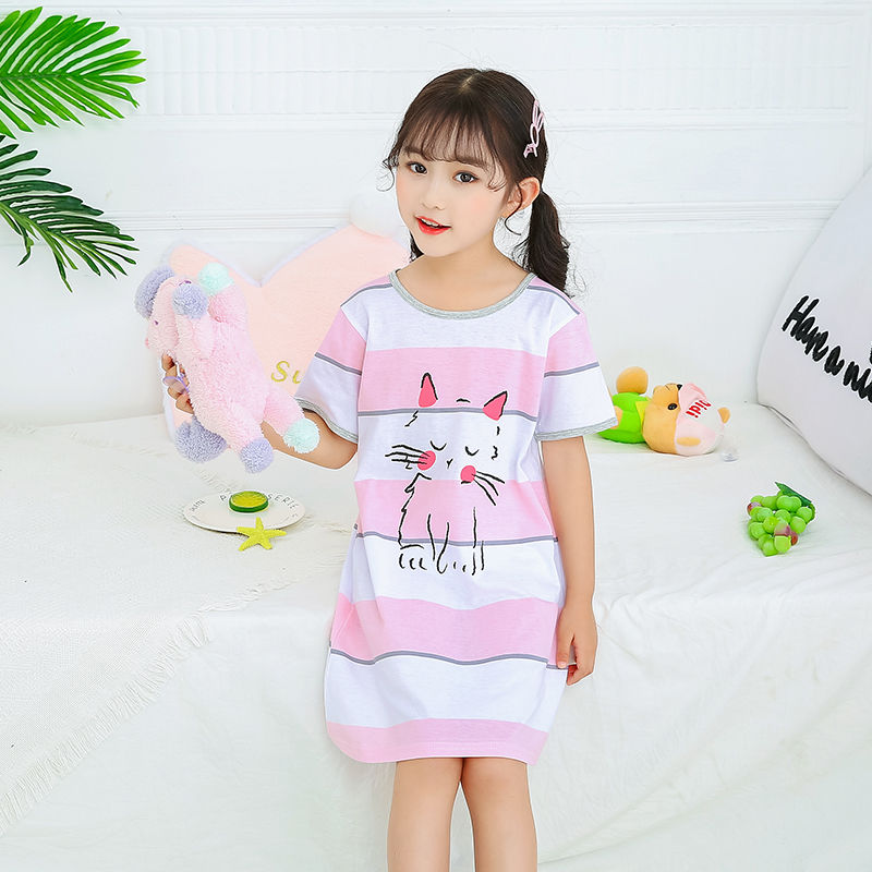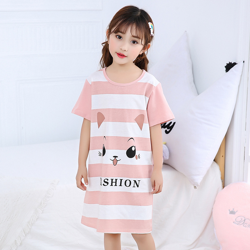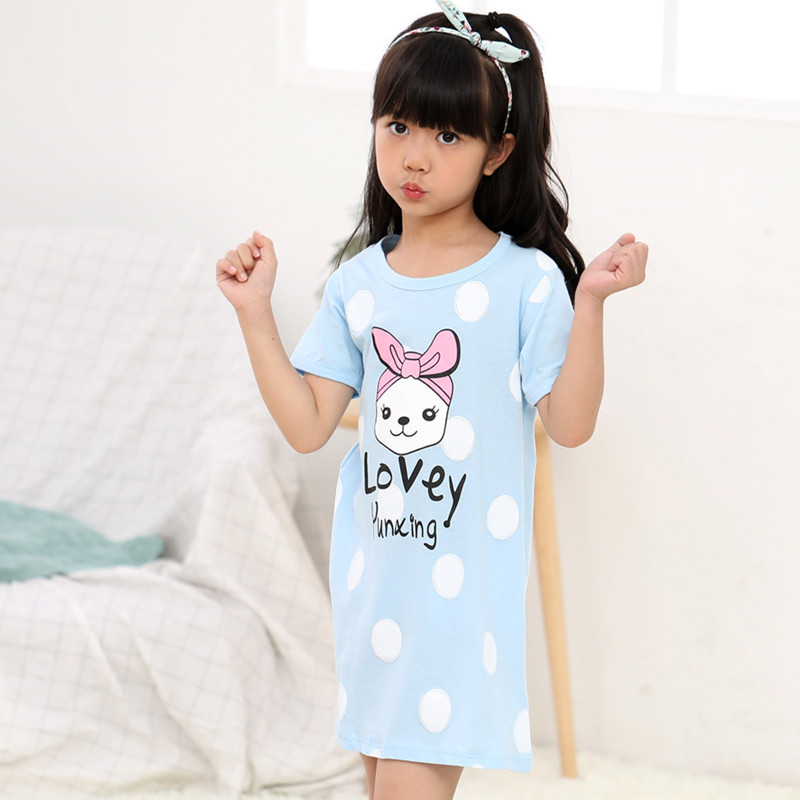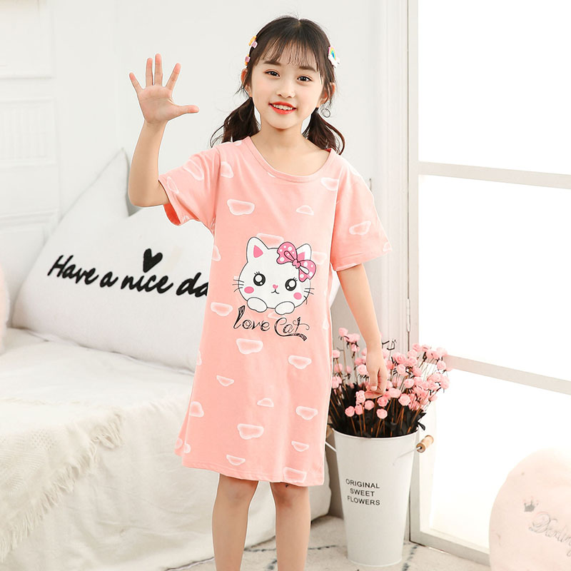 Kids Girls Nightgown Cartoon Nightdress Girl Sleepwear Nightie Summer Short Sleeves Nightwear Children Clothes