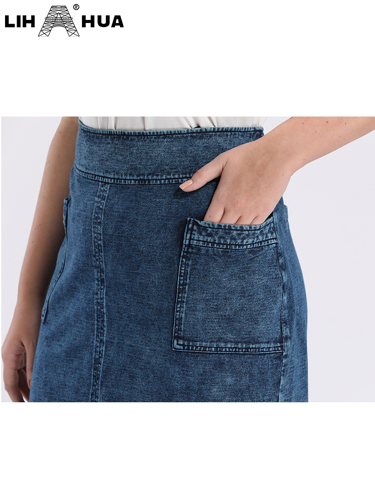 LIH HUA Women's Plus Size Denim Skirt Spring High Stretch Slim Pocket Skirt Casual Skirt