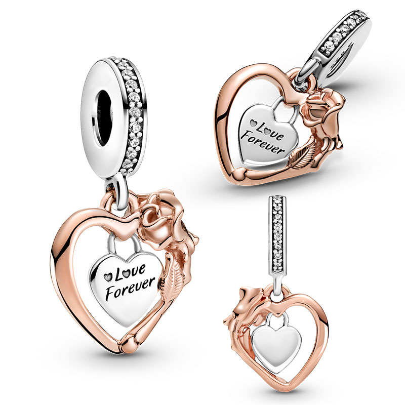 MULA Real 925 Sterling Silver Rose Gold Series Glittering Elegant Silicon Charm Bead Fit Original Pandora Bracelet Wome
