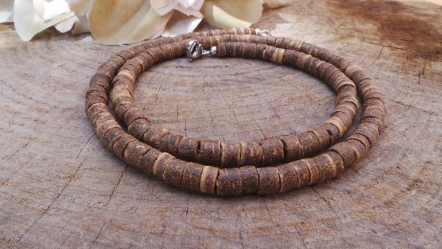 Mens beaded necklace. Mens surfer necklace.Surfer necklace. Brown beaded necklace. Mens coconut necklace