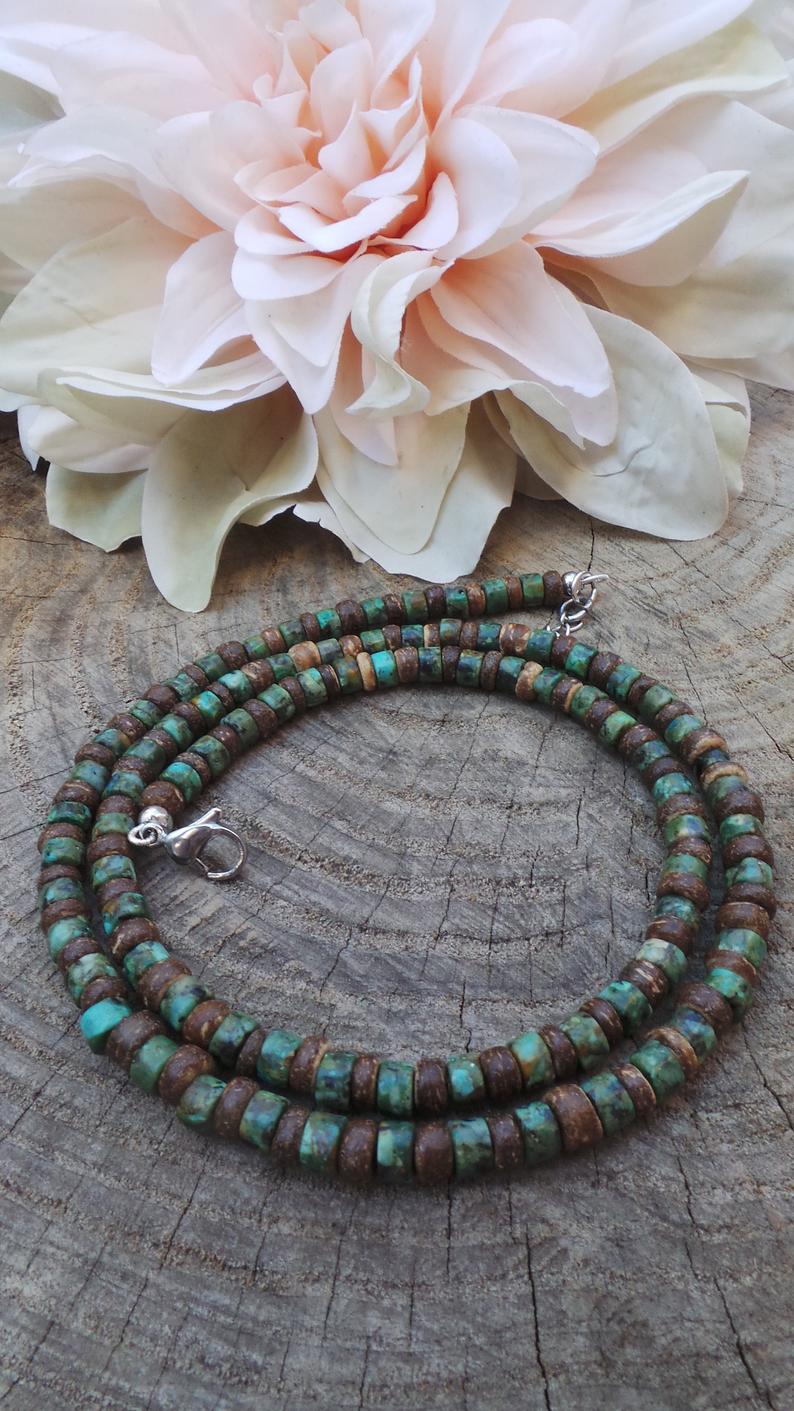 Men's African necklace, Men african Beaded jewelry, Surfer necklace Gifts for men, Wooden Beach Necklace