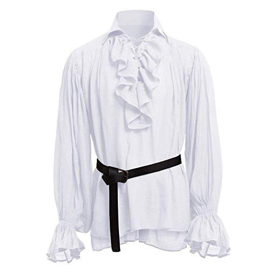 Mens Medieval Shirts Poet's Renaissance Costume Viking Pirate Captain Lace Up Ruffle Tops Sand Collar Shirt