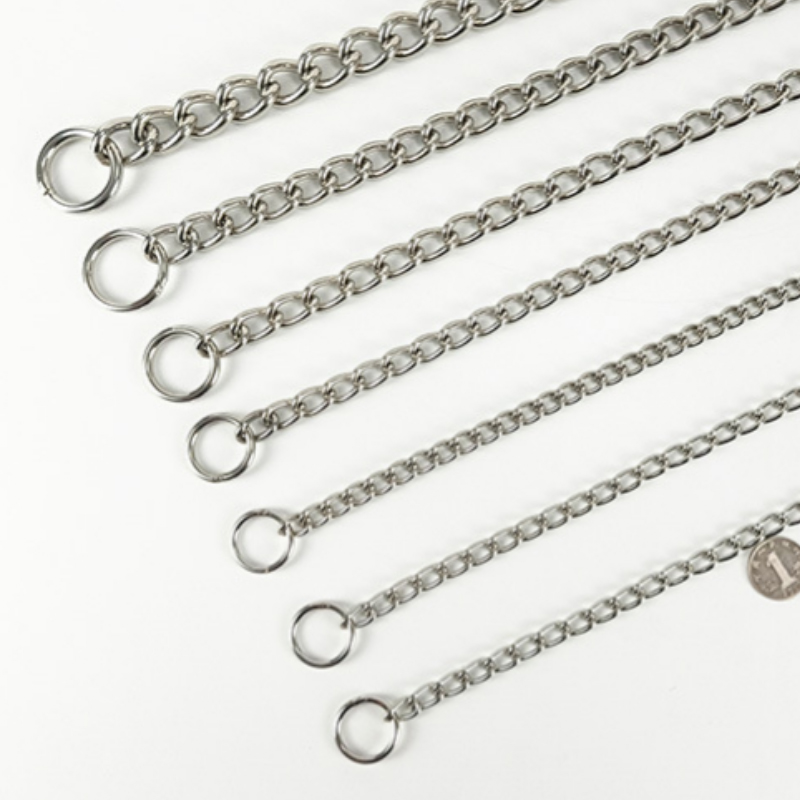 Metal Stainless Chain Dog Collar Silver Cuban Link Dog Slip Chain Choke Collar Steel Strong Slip Dog Collars for Pet