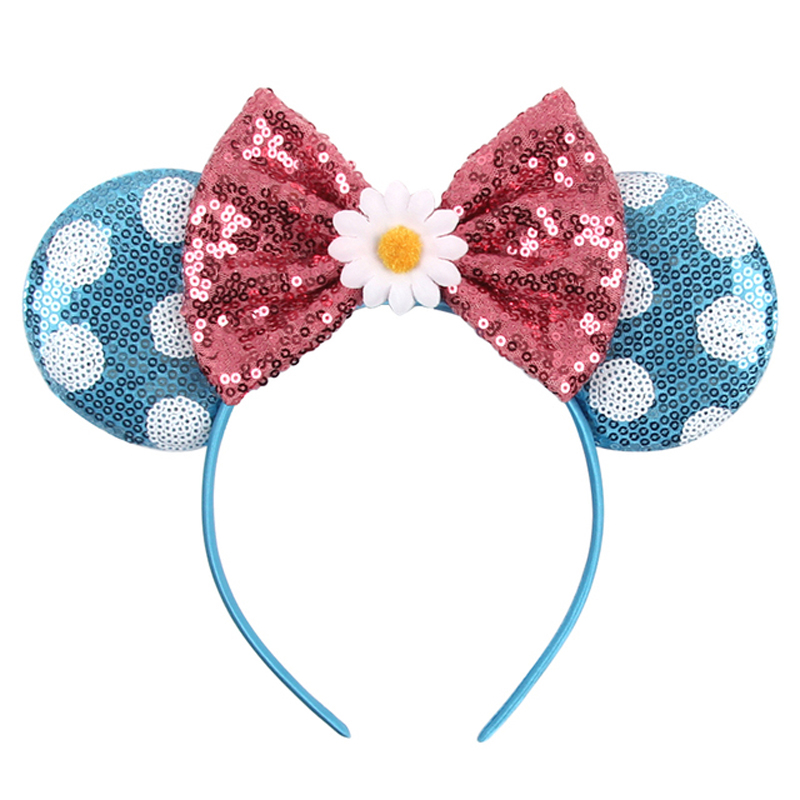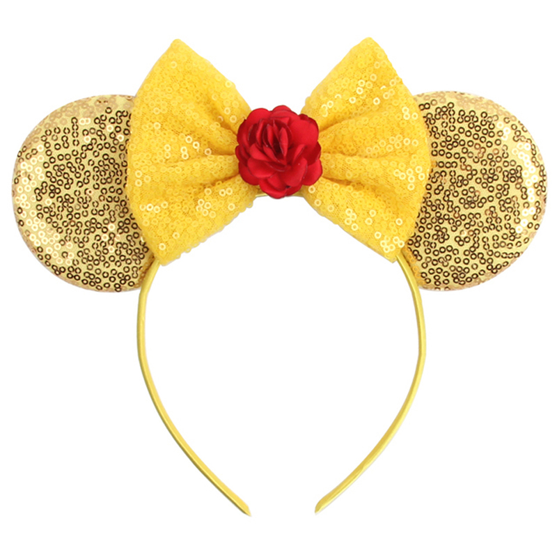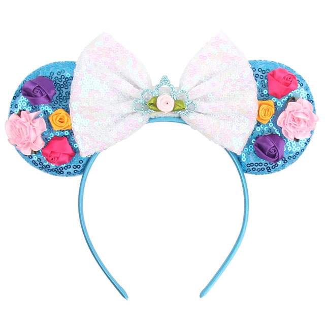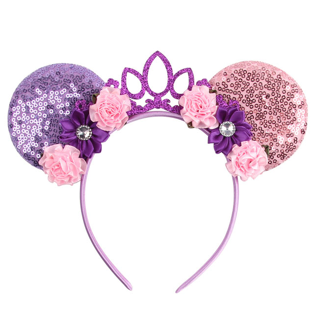 Mickey Mouse Ears Headband Pretty Princess Girls Birthday Party Cosplay Hairband Flowers Sequin Bow Hair Accessories