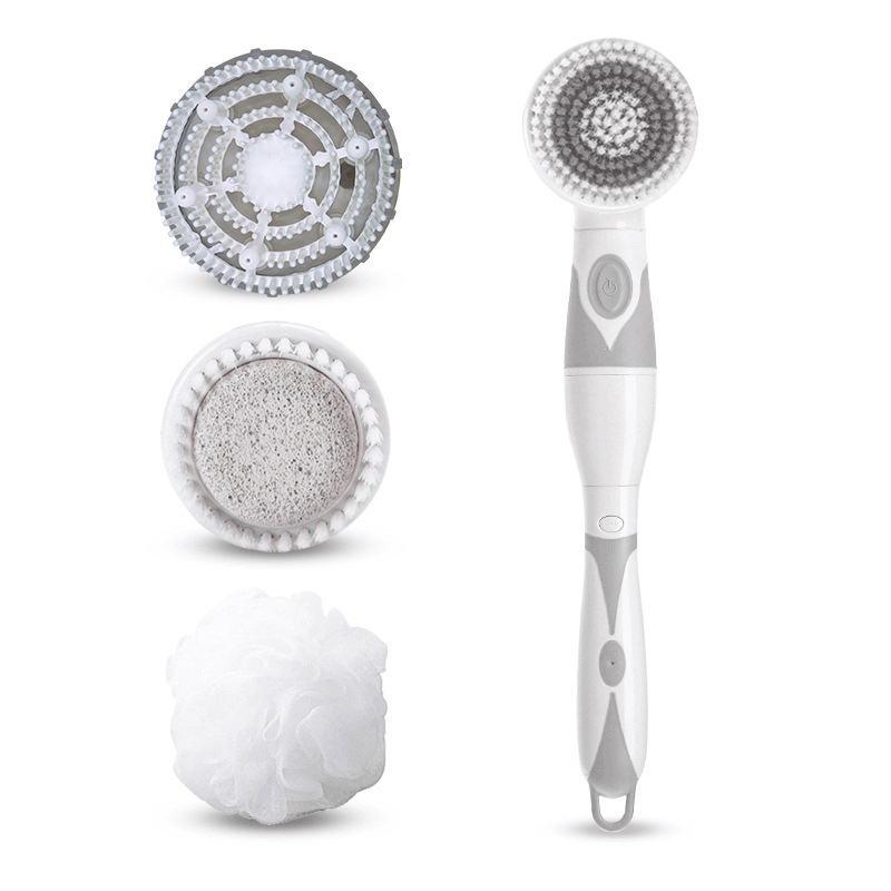 Note: The electric bath brush is composed of a brush head, a handle and a battery cover. It has the functions of rotating the brush with fast, medium and slow motor oscillation, pushing the brush up and down, and replacing the brush head. Purpose. The utility model has reasonable design, simple structure and integrated multi-function, which can not only help people to clean their backs, but also the vibration and massage functions of the motor can eliminate the fatigue of the human body, so that one can enjoy a comfortable bathing pleasure