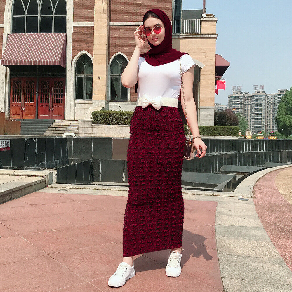 Muslim Women Long Bodycon Pencil Skirt Islamic Stretch Spring Evening Cocktail Party Knitting Casual Ladies Maxi Skirt