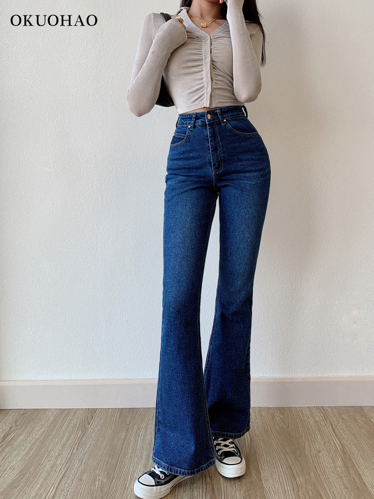 Okuohao Skinny Bell Bottom Jeans High Waist Stretch Straight Slim Fit Flared Denim Pants Casual Wash Black Y2k Trousers