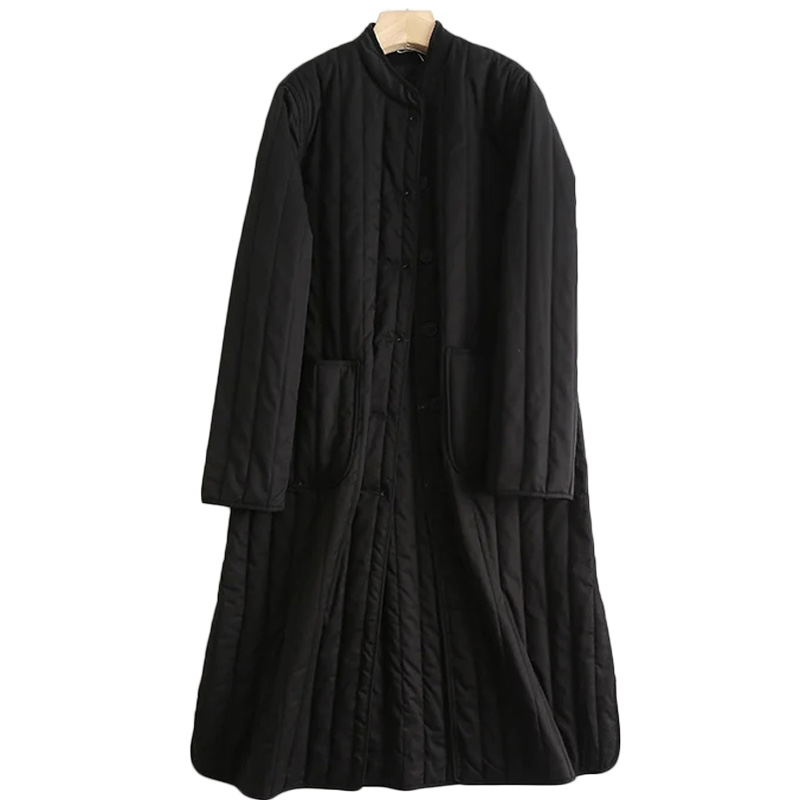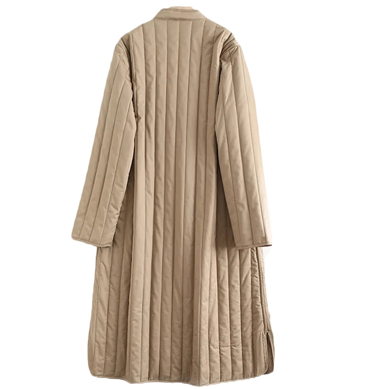OneBling Women Casual Traf Quilted Coats Winter Warm Thick Striped Padded Jacket Pockets Mid Length Loose Long Parkas