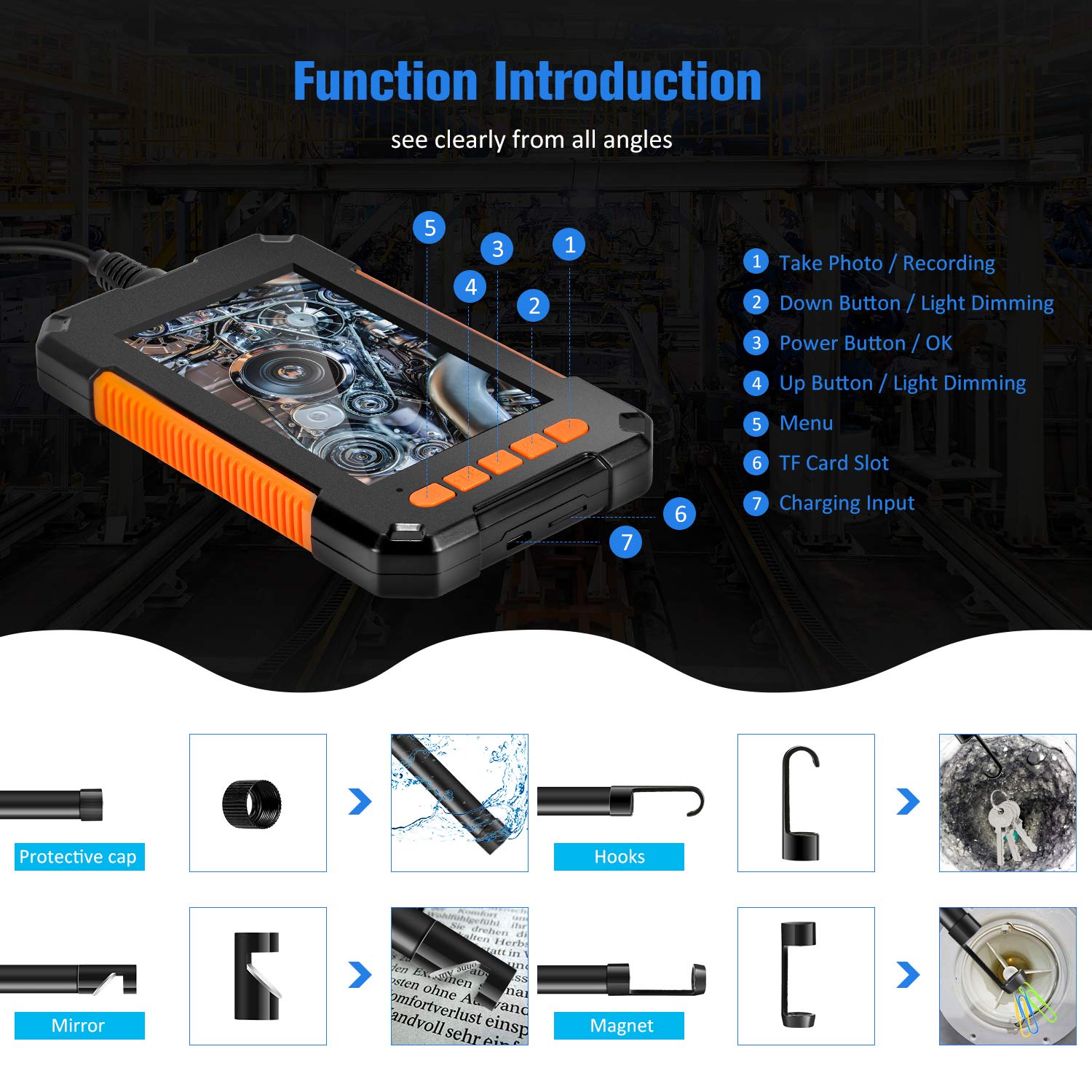 Usage : sewer inspection, auto inspection, industrial maintenance, etc