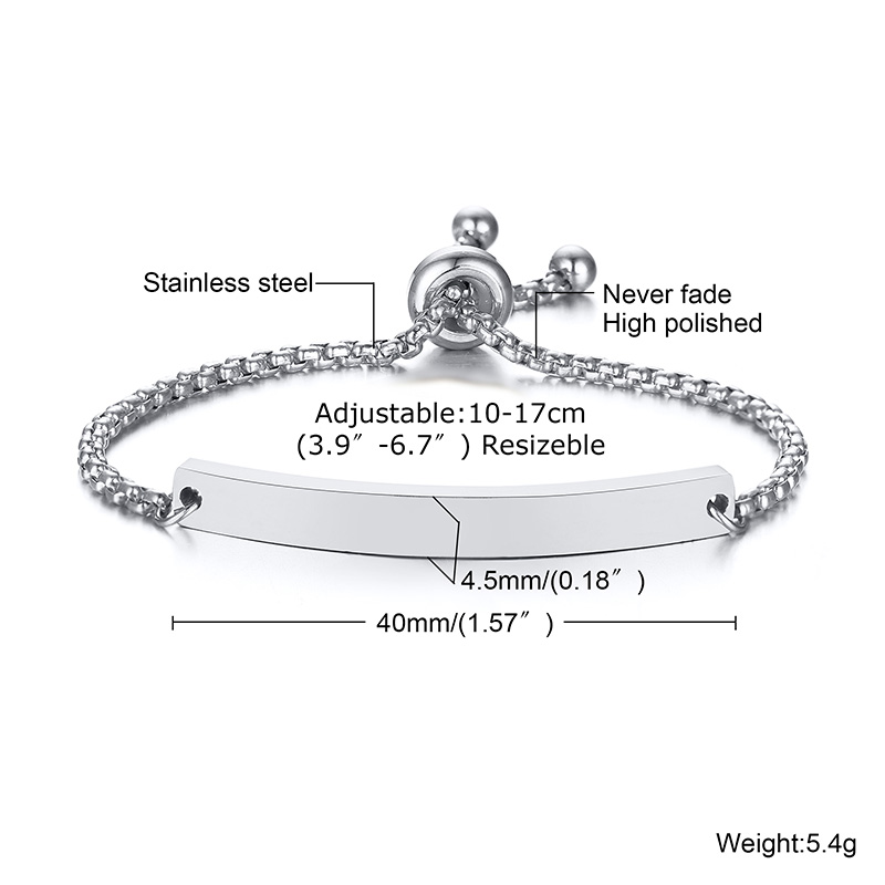 This is personalized stainless steel bracelet, we you can laser name , date , logo, picture on bracelet.
