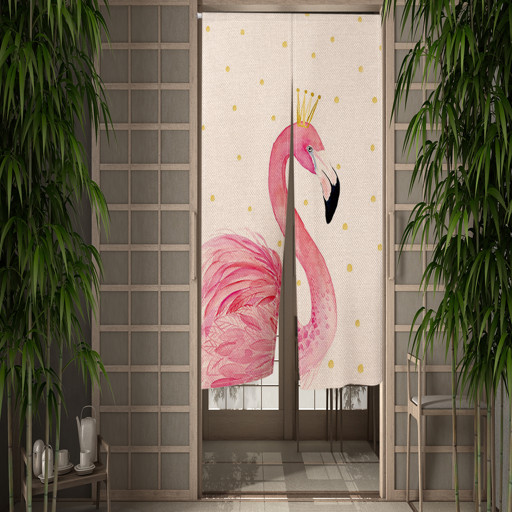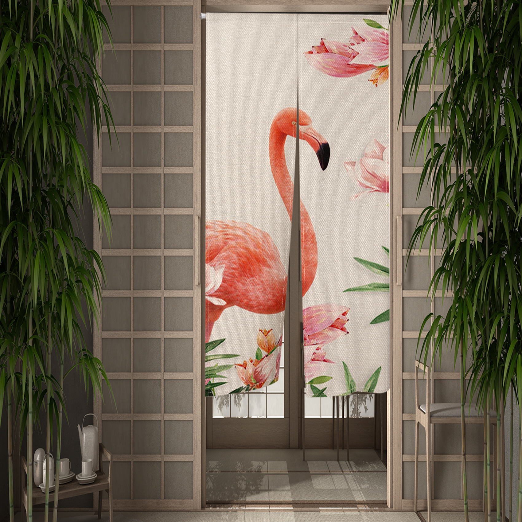 Pink Flamingo Doorway Curtain Creative Flowers Bird Door Curtains Hallway Kitchen Entrance Partition Boho Home Decor