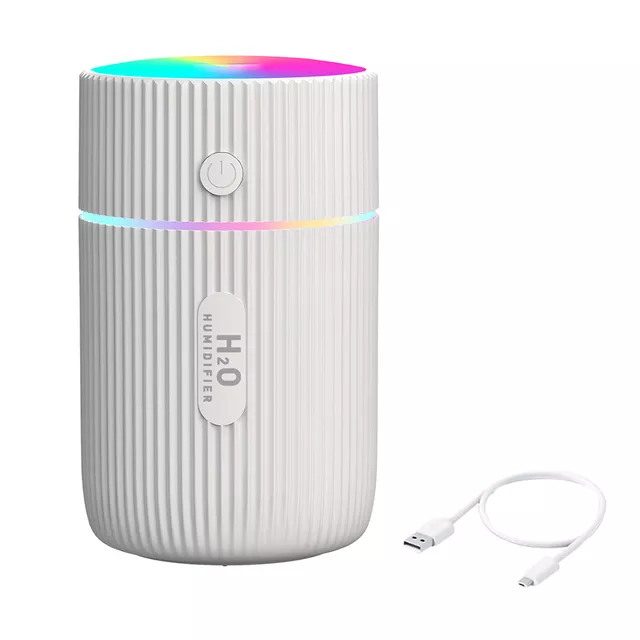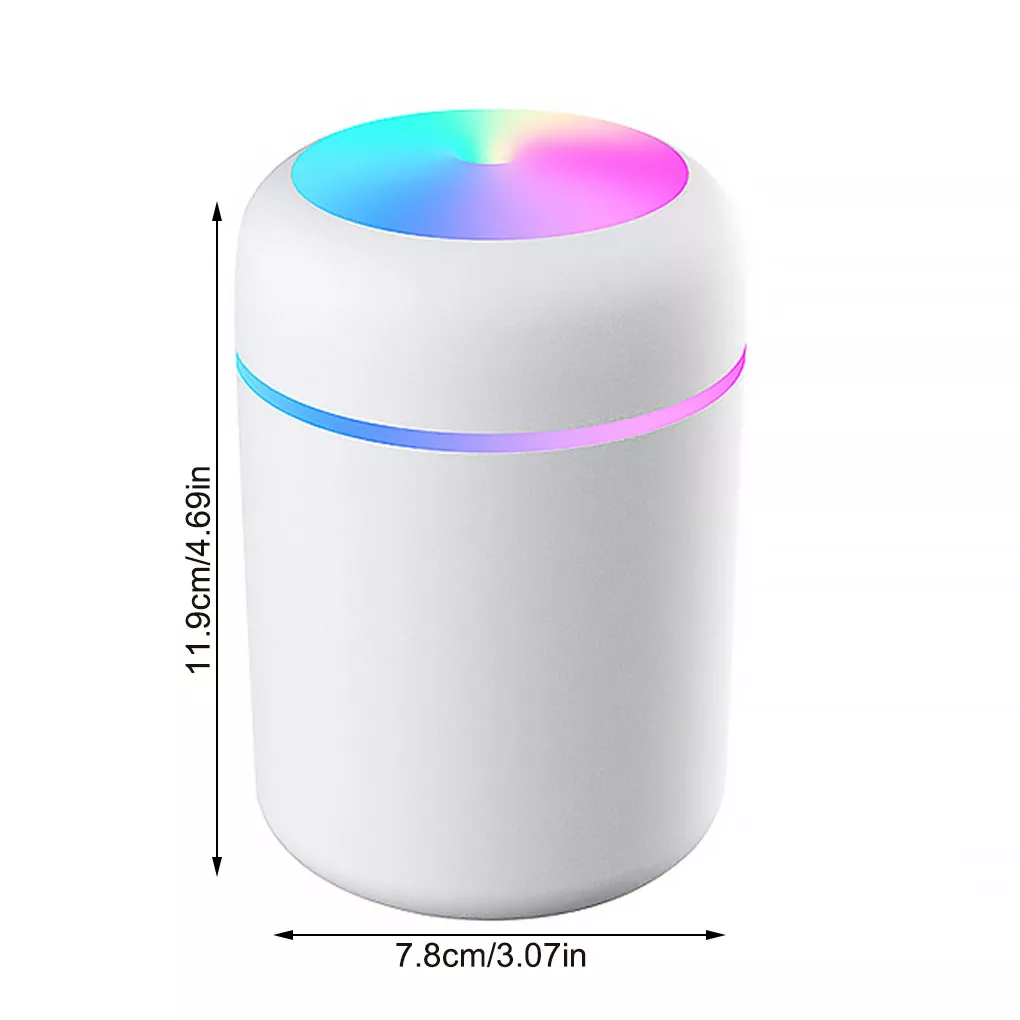 The mini humidifier features one key switch and a colorful atmosphere light effect.