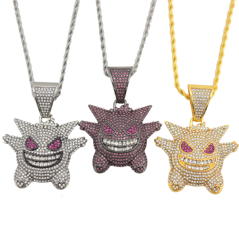 Punk Style Pokemon Anime Gengar Figures Funny Necklace Pendant Hip-hop Jewelry Boy Girls Necklace Pikachu Accessories Kid Gifts