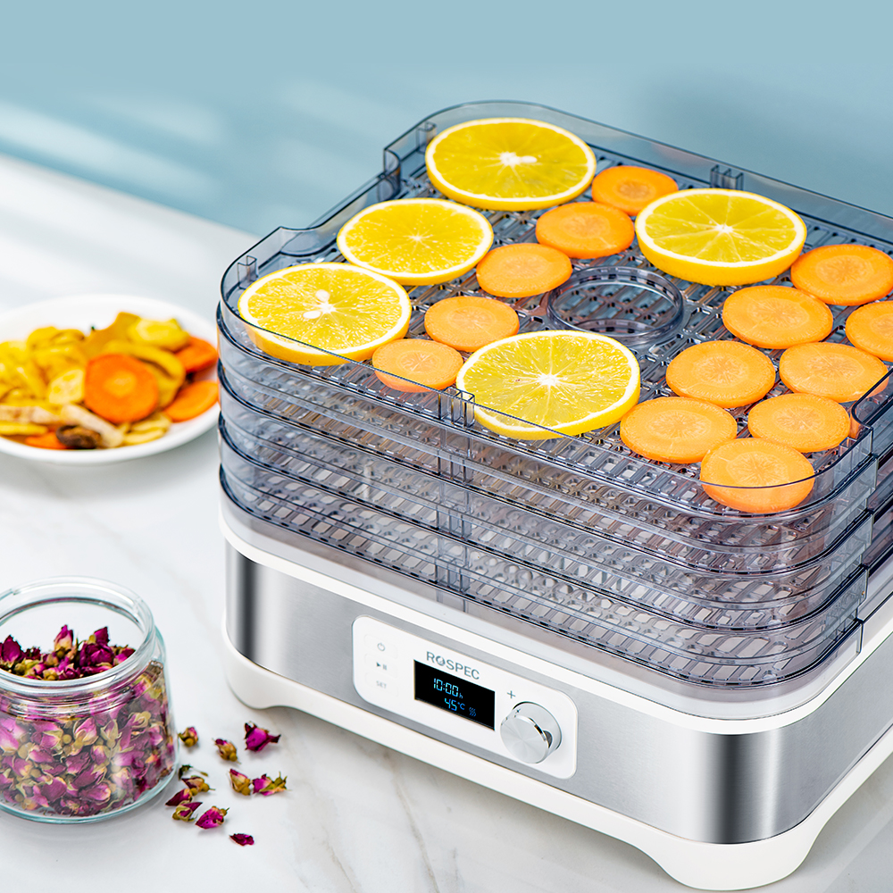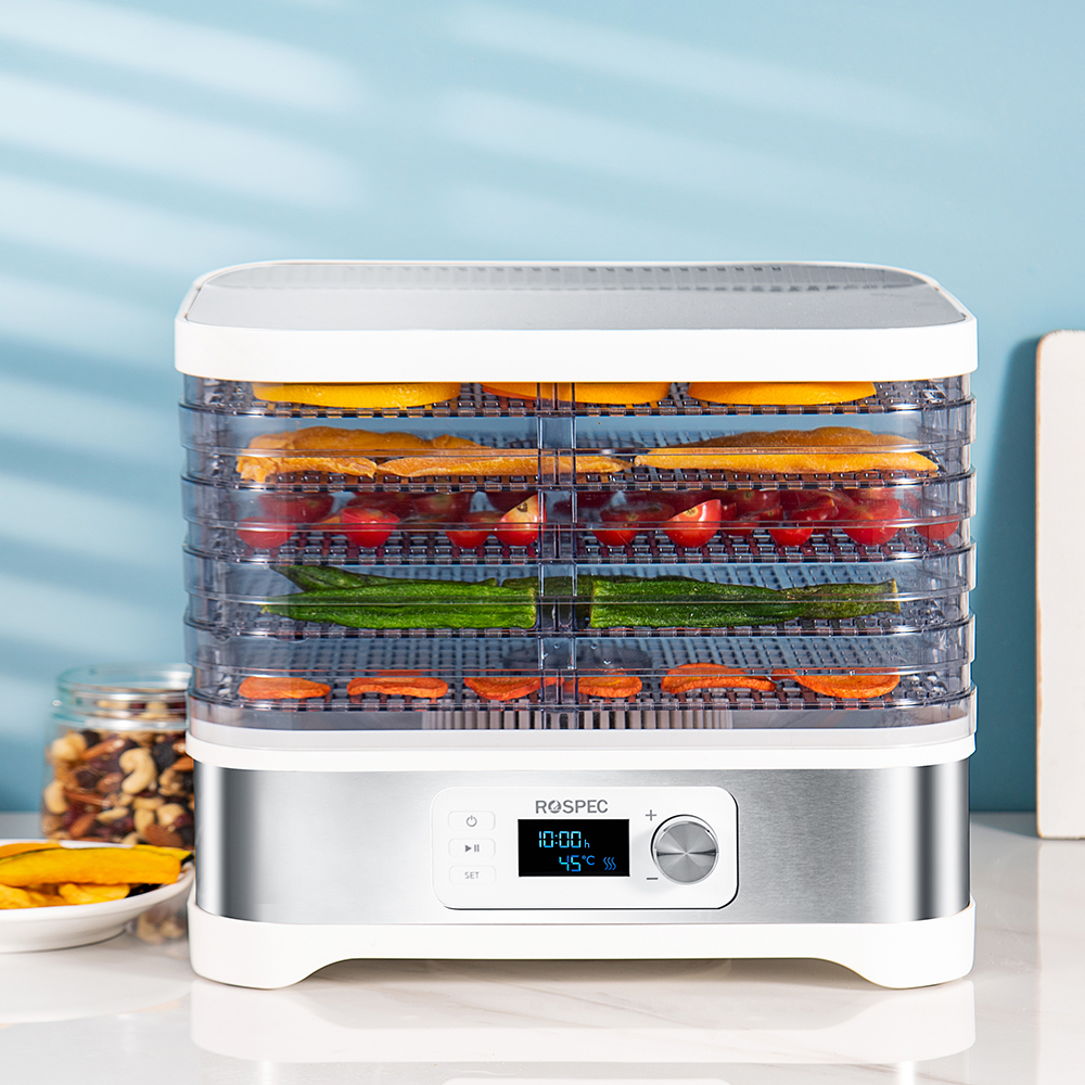[{"attrName":"Brand Name","attrValue":"ROSPEC"},{"attrName":"Origin","attrValue":"Mainland China"},{"attrName":"Inner Container Material","attrValue":"Stainless steel"},{"attrName":"Inner Container Layer","attrValue":"Five Layers"},{"attrName":"Power","attrValue":"<600W"},{"attrName":"Certification","attrValue":"CE"},{"attrName":"Model Number","attrValue":"FD-1200E"},{"attrName":"Rated Power","attrValue":"400W"},{"attrName":"Digital control panel","attrValue":"LCD Display Screen"},{"attrName":"Capacity","attrValue":"10L"},{"attrName":"Timer adjust","attrValue":"1 - 24 hours"},{"attrName":"Electric voltage","attrValue":"220 - 240V"}]