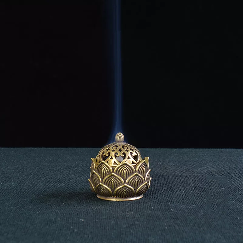 Retro Copper Small Lotus Pocket Hollow Out Incense Stick Burner Brass Incense Holder with Cover Sandalwood Cense Home Decoration