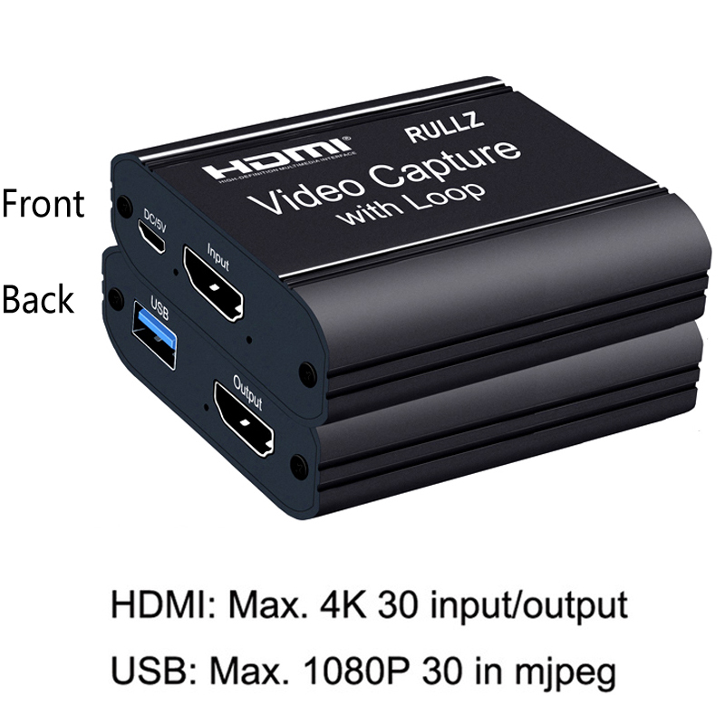Rullz 4K 60Hz HDMI Video Capture Card TV Loop 1080P Game Recording Plate Live Streaming Box USB 2.0 3.0 Grabber for PS4 Camera