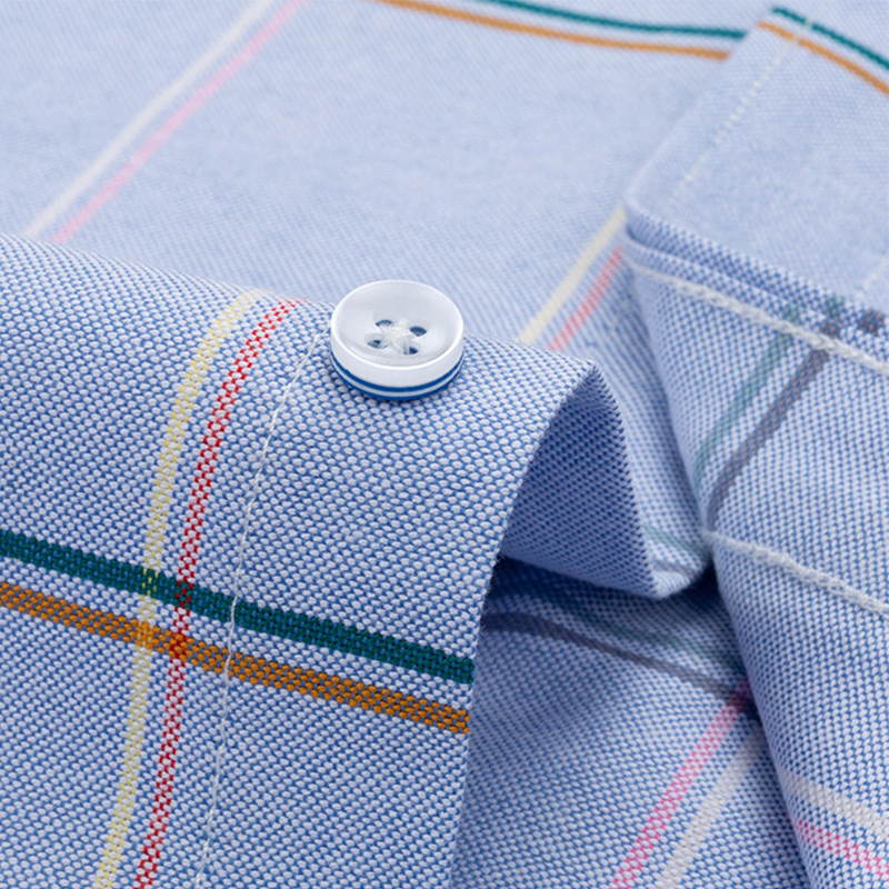 S-6XL Mens Oxford Plaid Casual Dress Shirt For Men Long Sleeve Front Patch Chest Pocket Regular-fit Button-down Thick Work Shirt