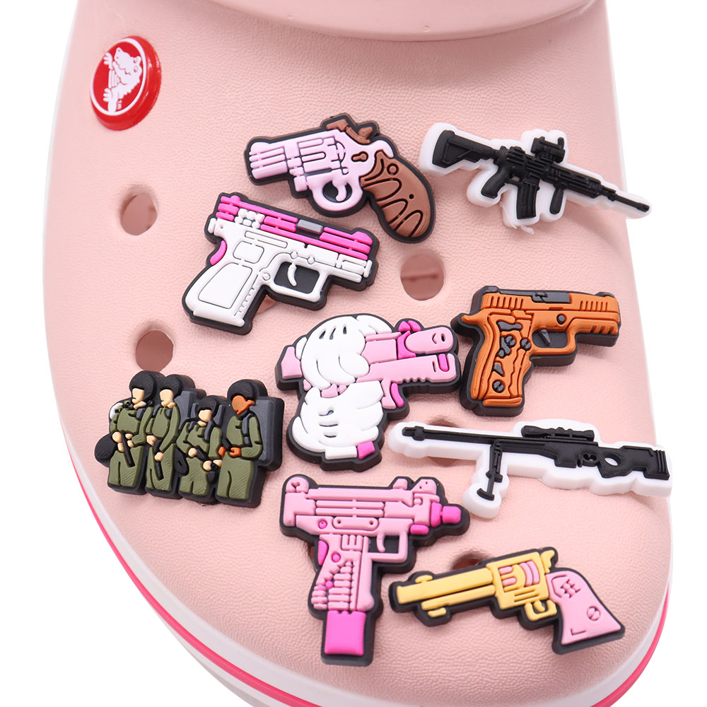Sales 1pcs Soldier Gun Shoes Accessories Man Garden Sandals Buckle Decorations Fit Croc Jibz Charm Party Gift