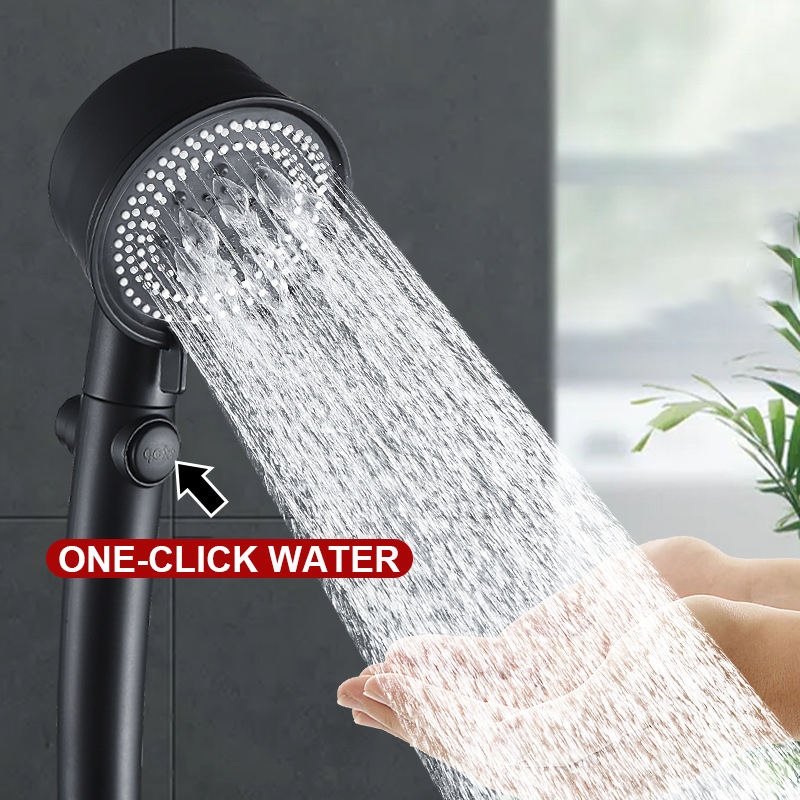 <<  Water saving one button stop: Just gently press the button and you can stop the water flow. This prevents unnecessary water waste in the shower.  It is convenient for washing animals, washing children, long hair.