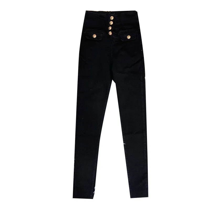 Slim Women Skinny Pencil Jeans Button Large Size S-3XL Mom Denim Pants Vintage Stretch Pants Black Casual Leggings
