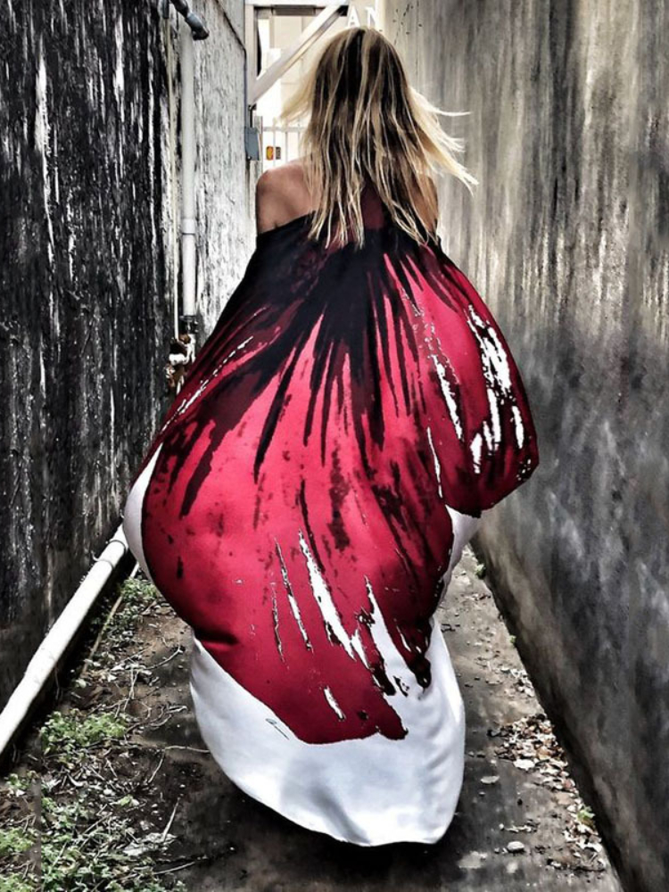 Summer Oblique Shoulder Print Women's Dress Temperament Casual Sexy Beach Vacation Big Swing Dress Comfortable