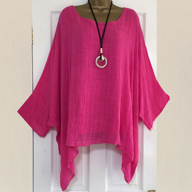 Summer Solid Color Blouses Batwing Sleeve Loose Women Casual O-Neck Long Sleeve Blouse Anomalistic Tee Shirts Large Size 5XL
