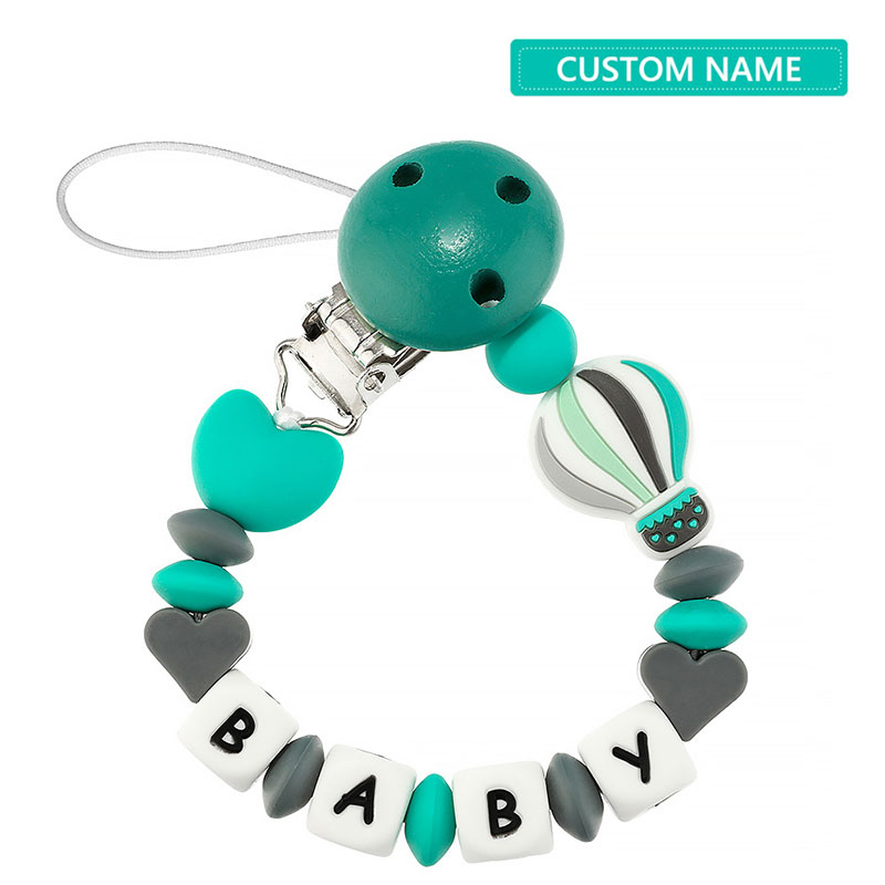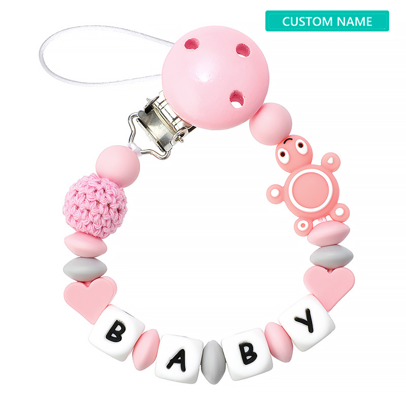 TYRY.HU Baby Pacifier Clip Chain Personalized Name Dummy Holder Silicone Teething Beads with Cute Turtle balloon Soother Chains