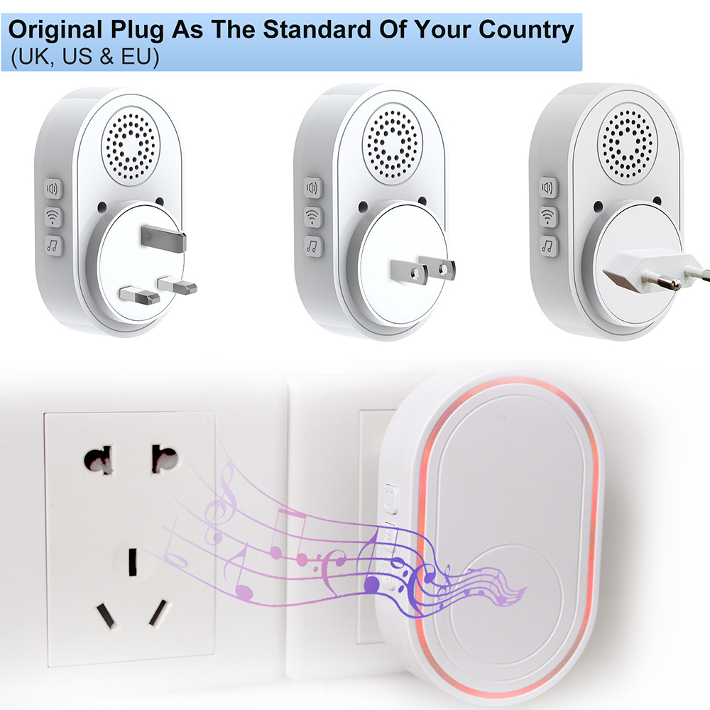 - AT HOME, with local alarm / notice voice and LED flicker notification, 5 levels volume can be adjust, 58 songs optional