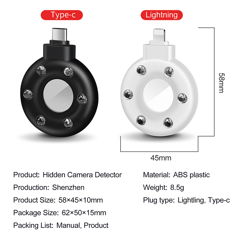 Description: Plug and Play For iOS or Android LED Lighting (Red) Infrared light sense Protect privacy and refuse to take candid photos Let everyone's privacy be protected.