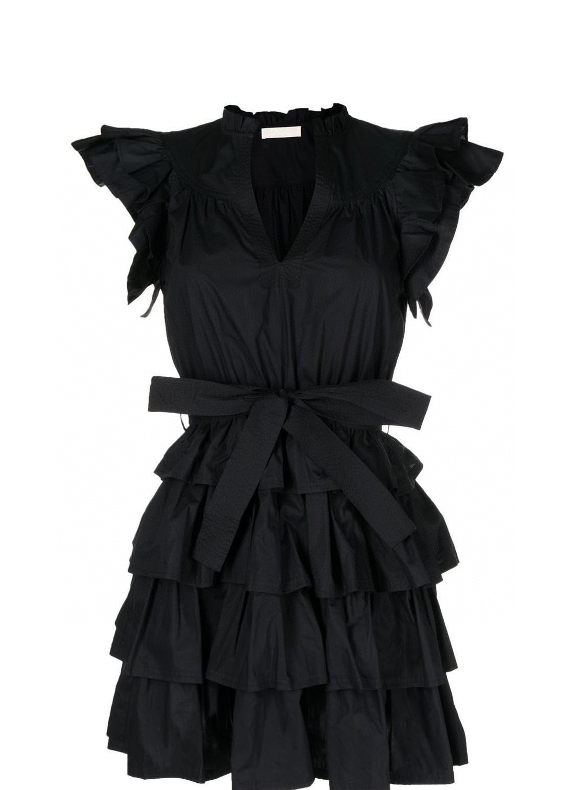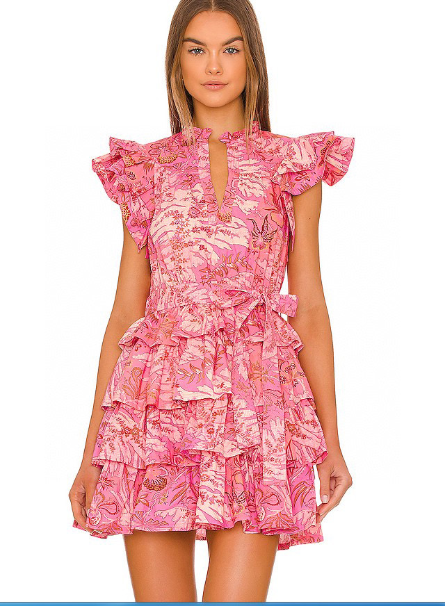 UllaJohns** summer women dress cotton V-neck no sleeve floral printing casual style cascading ruffle minidress