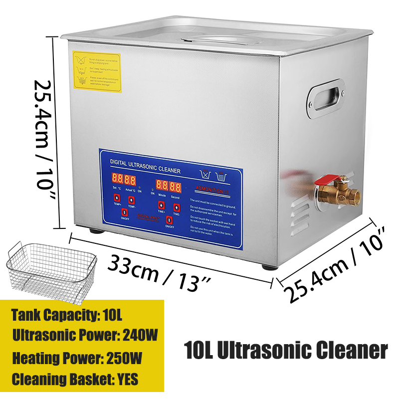 Tank Capacity: 9.6-10L (Since the bottom of the ultrasonic cleaner is a curved surface, the actual volume will be smaller.)