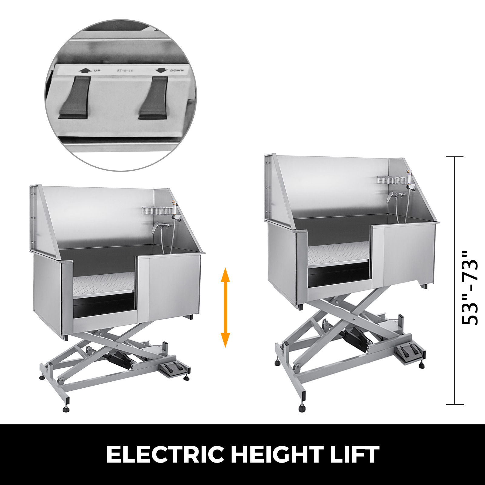 VEVOR 50 Inch Electric Pet Dog Grooming Tub With High Pressure Sprayer Stainless Steel Electric Lift Height Dog Wash Bath Tub
