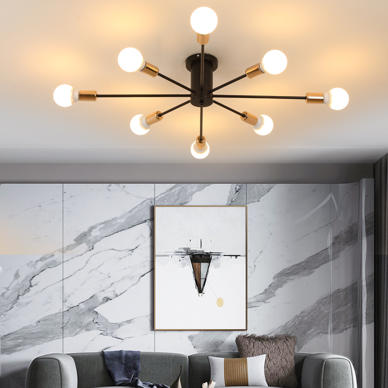 Vintage Metal Star Chandelier Lighting Black/White /Gold 6/8/10 Sockets Retro Spider Light Semi Flush Mount Ceiling Lamp Moder