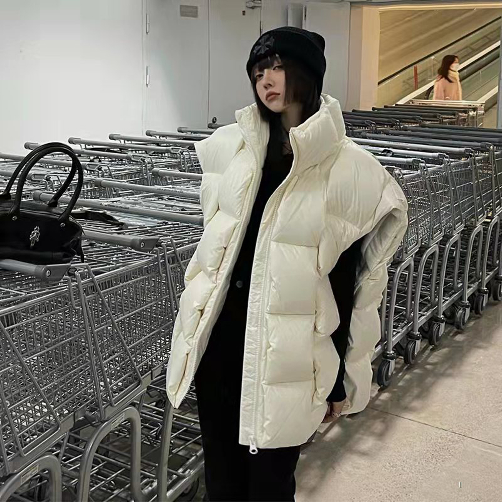Warm Waistcoat Sleeveless Women Green Loose White Duck Down Vest Stand Collar Sleeveless Jacket Woven Vest Female