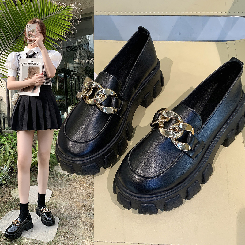 Women Spring Black Platform Flats Shoes Women Loafers Slip on Boat Shoes Metal Chain Designer Casual Leather Oxfords