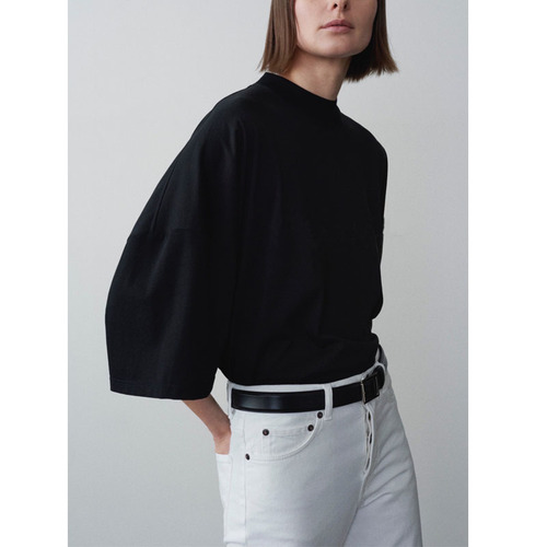 Women T-shirt Spring/Summer The R*w Solid Color Round Neck Slight High Neck Half Sleeve Ladies Casual T-Shirt