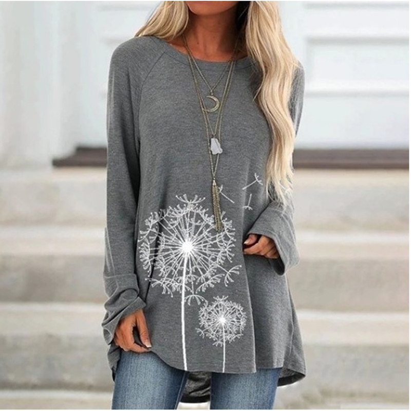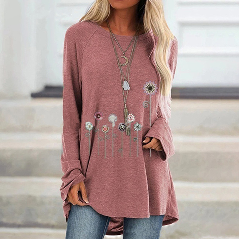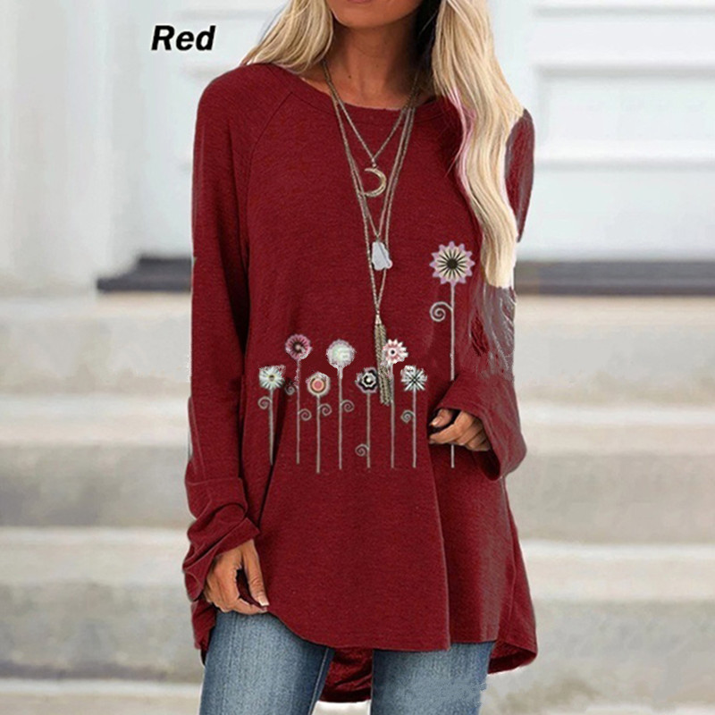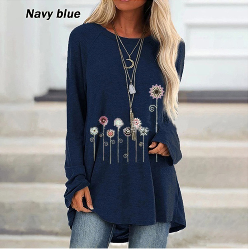 Women's autumn floral print blouse long sleeve round neck cotton shirt WX38