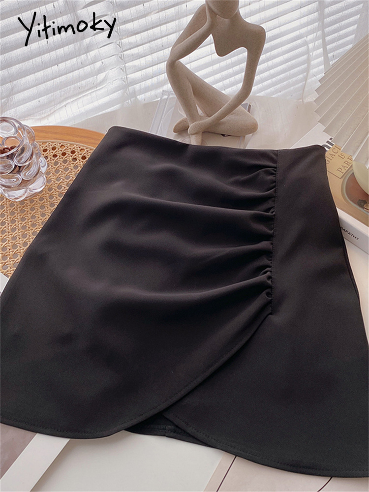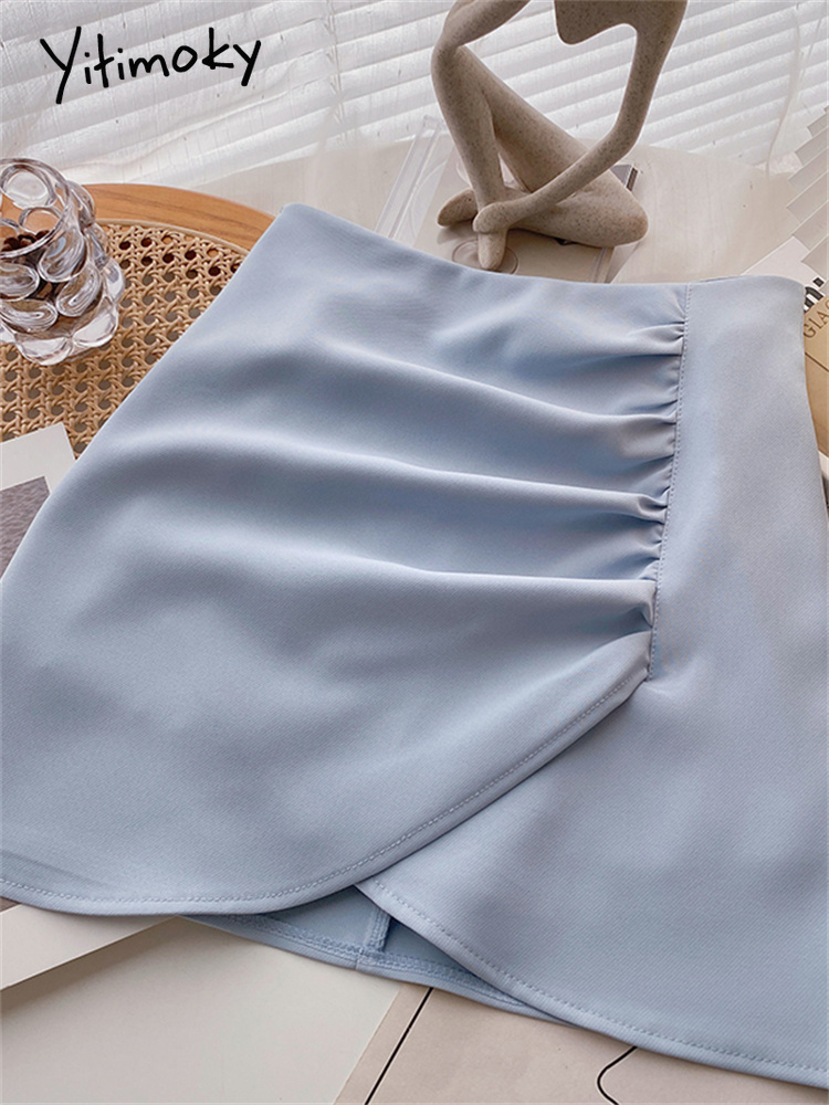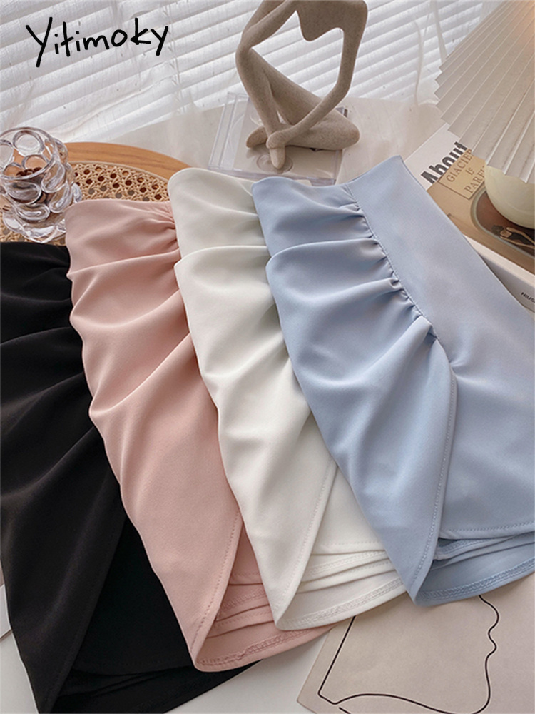 Yitimoky Bud Mini Skirts for Women Elegant Ladies Chic Skirts with Shorts High Waisted Style White Blue Pink Black Skirts