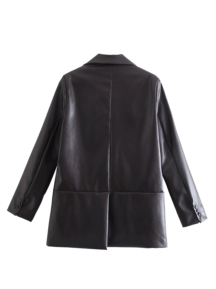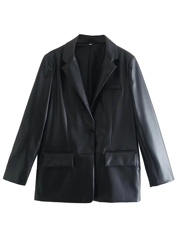 ZACK RAIN Women Faux Leather Black Suit Jacket 2022 Fall/Winter Commuter Ladies Blazer Office Party Loose Female Chic Outwear