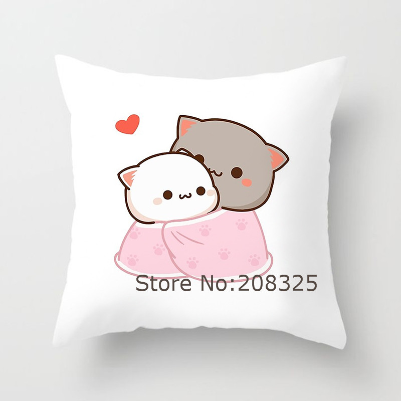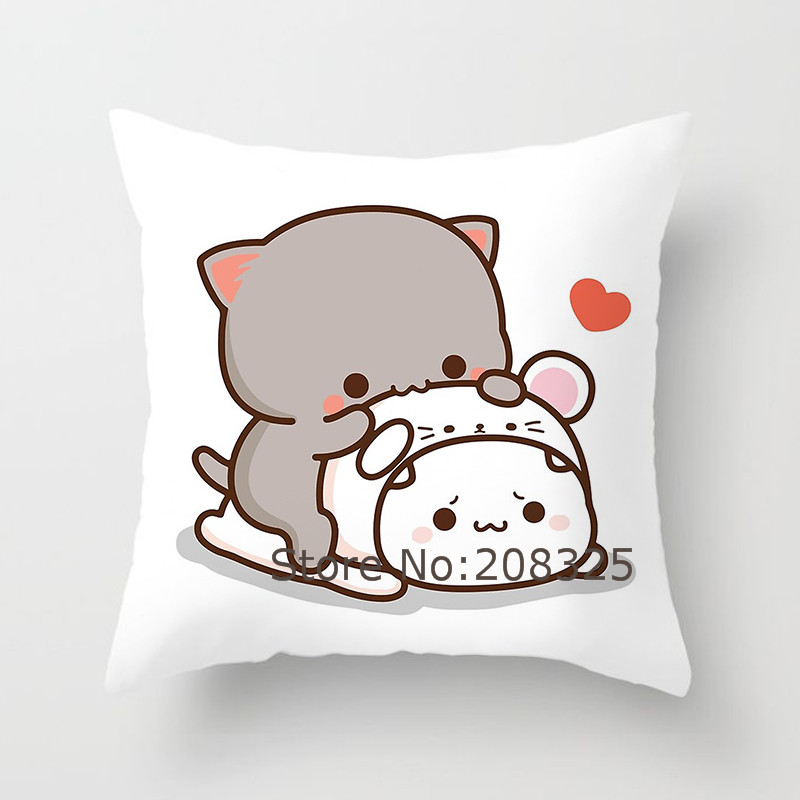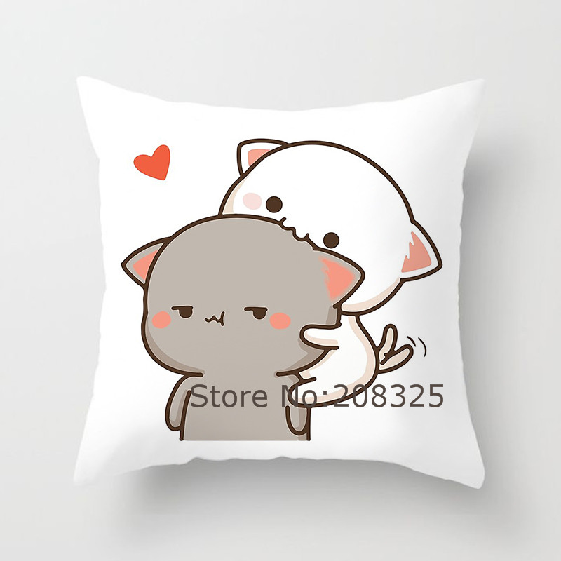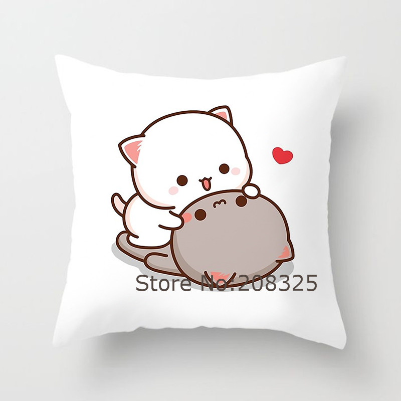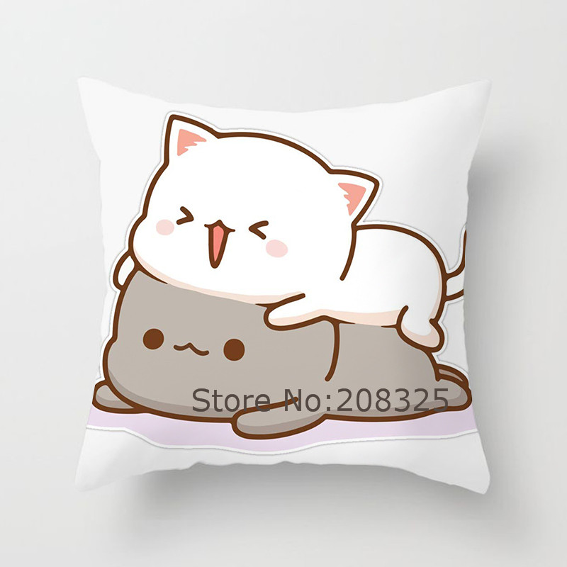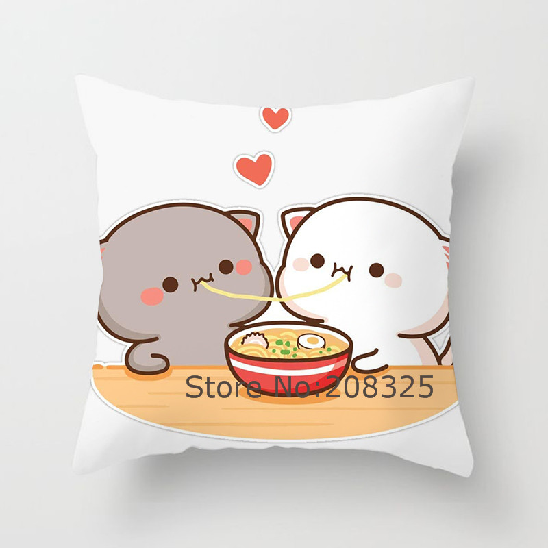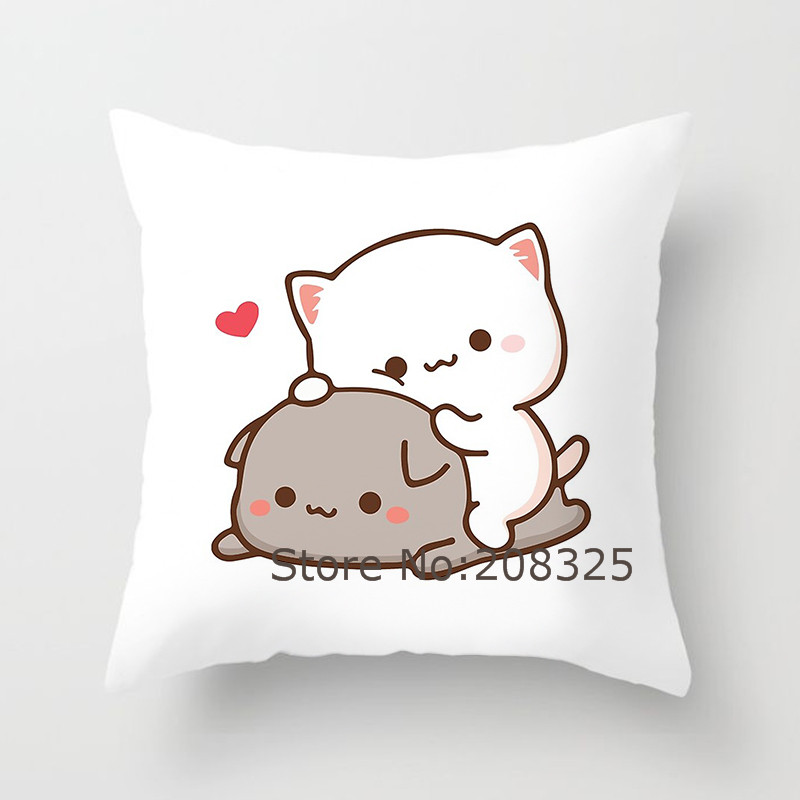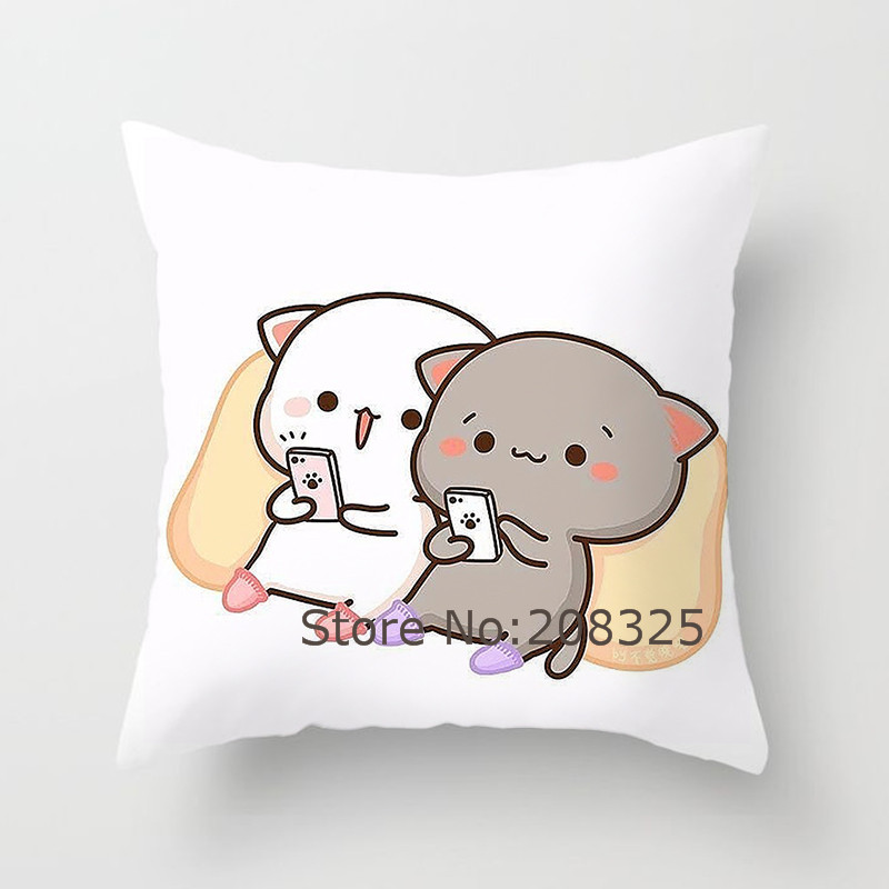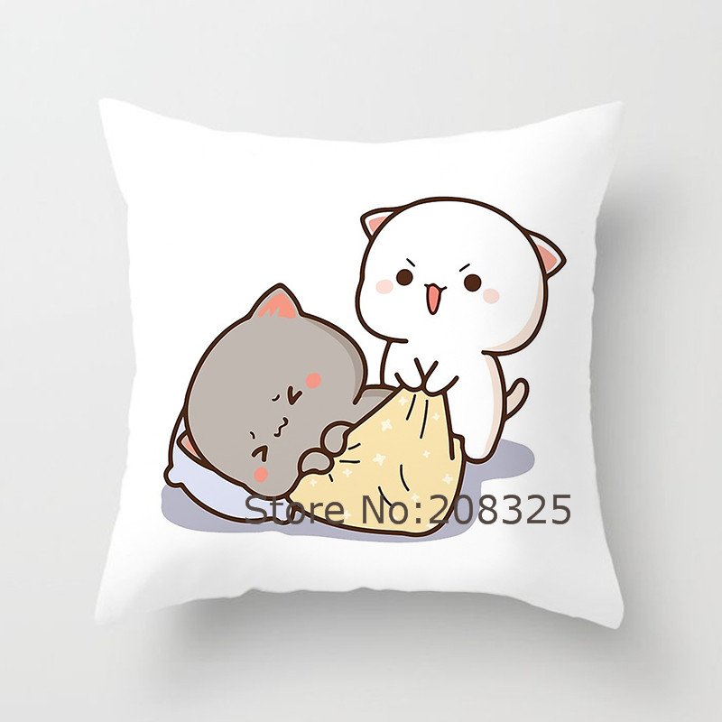 ZENGIA Peach and Goma Pillow Case Mocha Mochi Peach Cat Cushion Cover Pillow Cover Decorative Pillows For Sofa Car Pillowcase