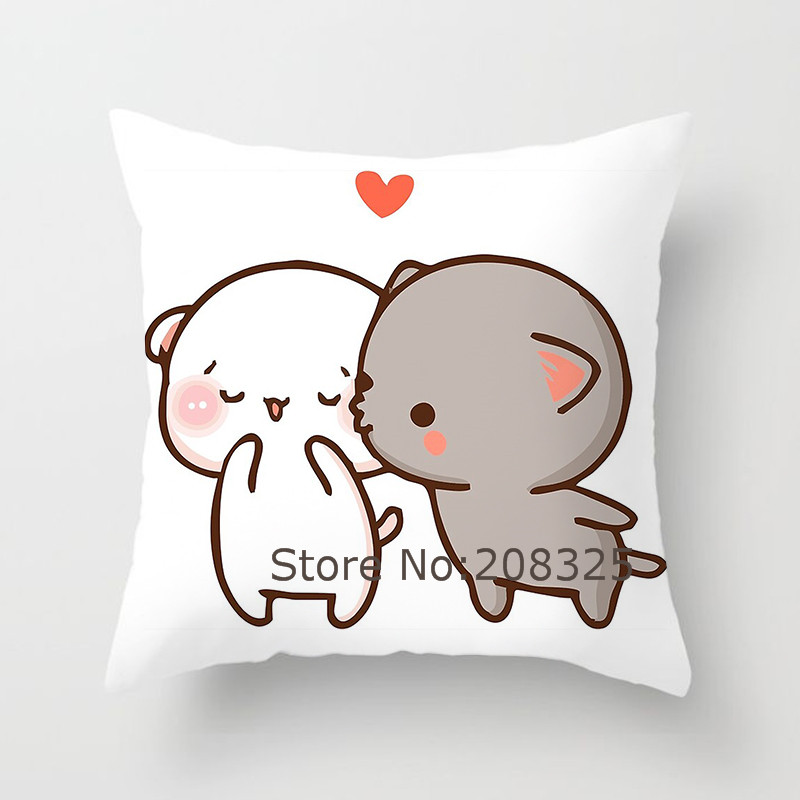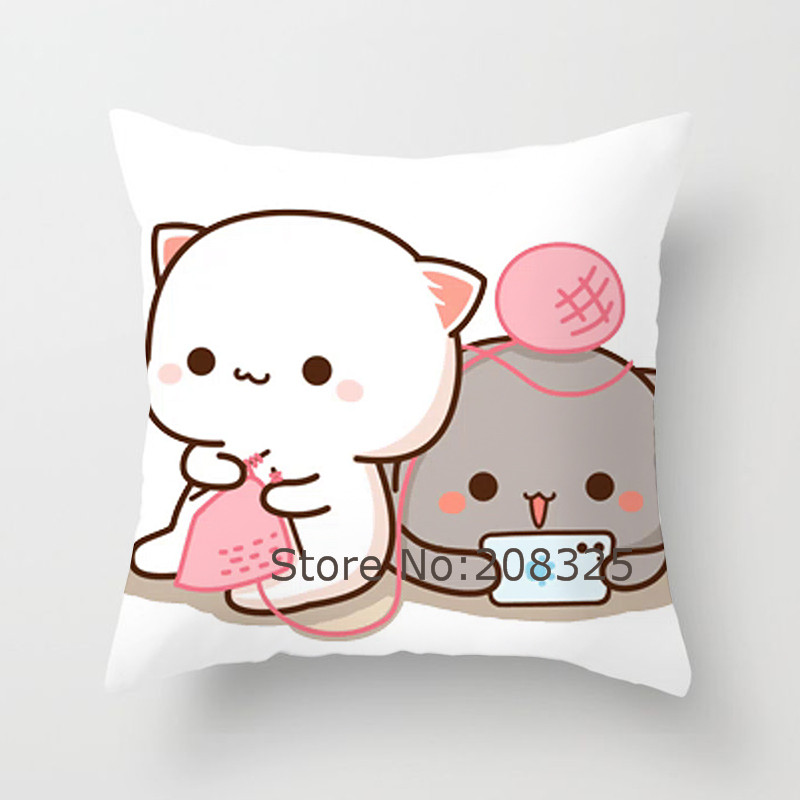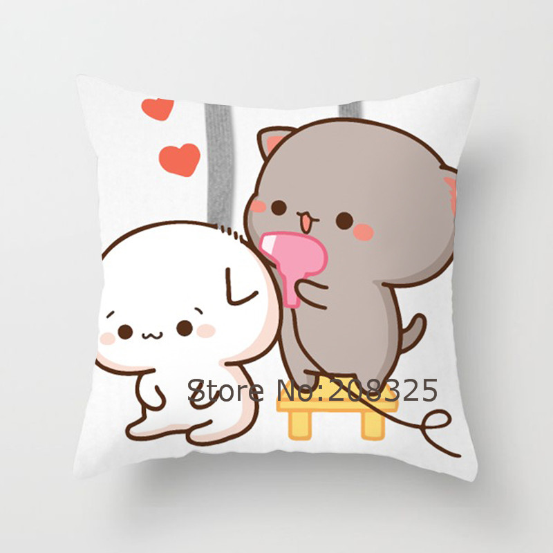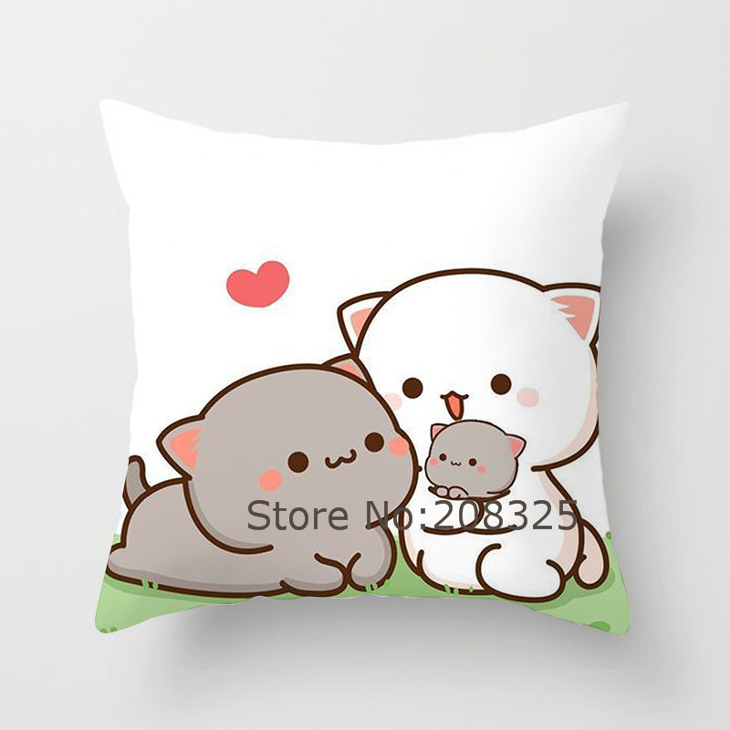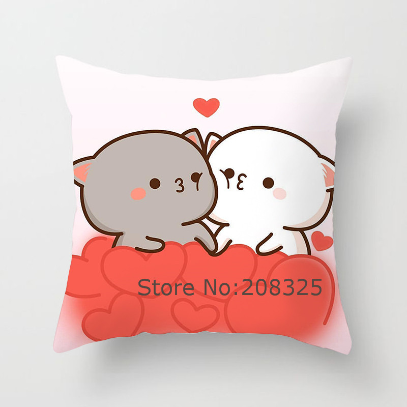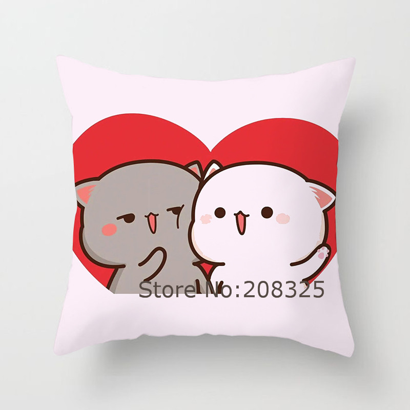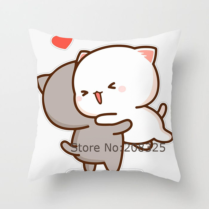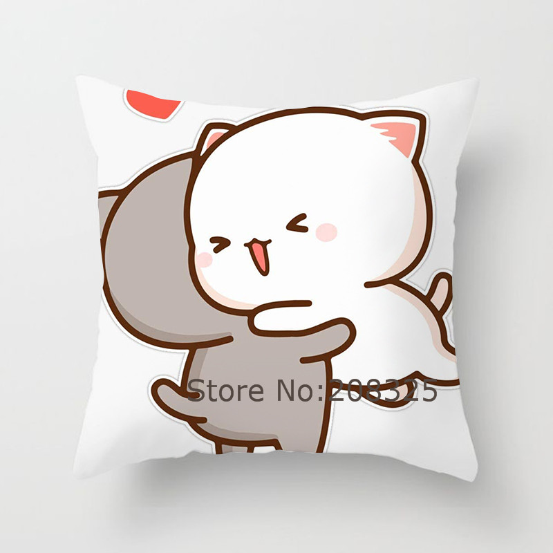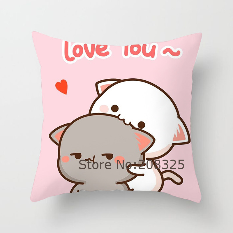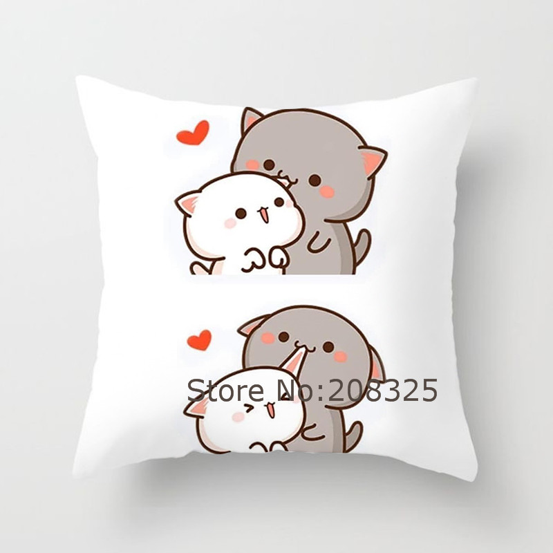 ZENGIA Peach and Goma Pillow Case Mocha Mochi Peach Cat Cushion Cover Pillow Cover Decorative Pillows For Sofa Car Pillowcase