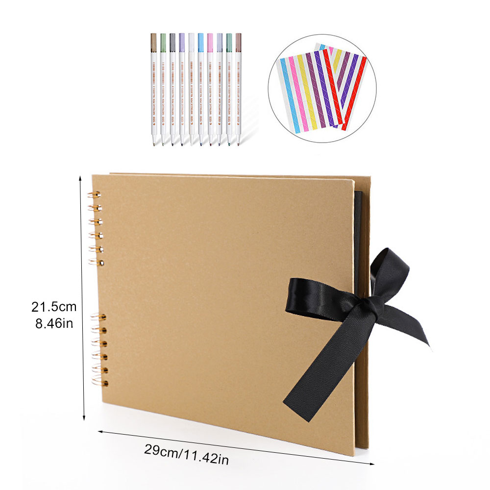 1. Cardboard cover, there are exquisite black ribbons on the hard card cover, and there are high-quality thick kraft paper black pages inside, which will not fade and keep your beautiful moments lasting