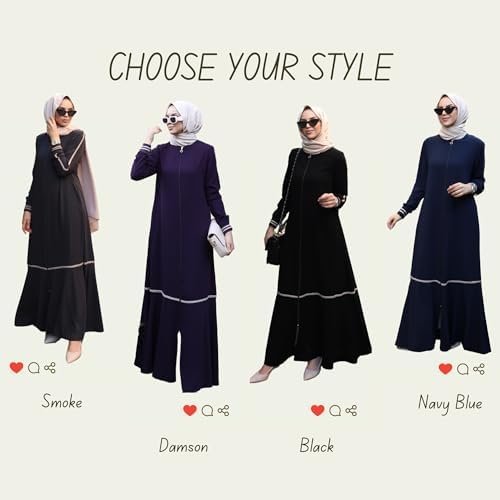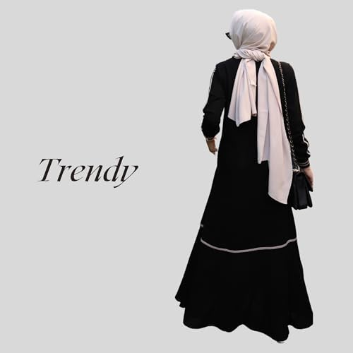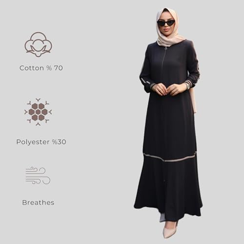 Abaya for Muslim Women Zipper and Stripe Detail on Skirt and Sleeves | Long Sleeve Dress Islamic Kaftan Hijab Robe Prayer