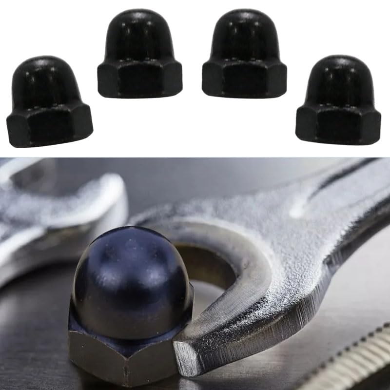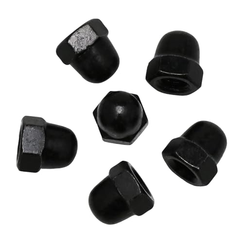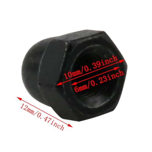 Black cap nuts have excellent load-bearing and rust/wear resistance, good corrosion resistance and corrosion resistance.The surface of M6 nuts is galvanized and smooth without burr, effectively preventing weathering and improving the appearance of the finished product.Hex cap nuts with internal screw caps also protect you and other components.The acorn cap is easy to tighten with a wrench and is very tough and lightweight in all conditions.M6 nuts are suitable for: mechanical equipment, electronic equipment, communication equipment, etc.Product name: M6 nutsMaterial: Black zincColor: BlackSize:Pitch: 1mm/0.04inchHeight: 11mm/0.43inchNominal diameter: 6mm/0.24inThe package contains:M6 nuts *24pcsAttention:Due to manual measurement, please allow a slight error in size.There may be slight differences in color due to different screen displays.