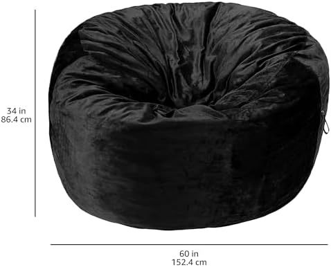 Amazon Basics Memory Foam Filled Bean Bag Chair with Microfiber Cover, 5 ft, Black, Solid