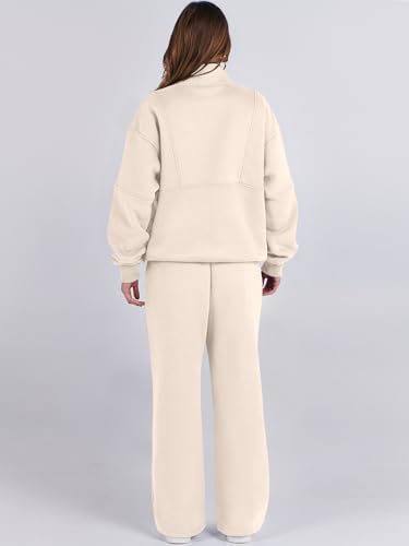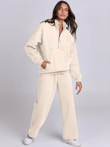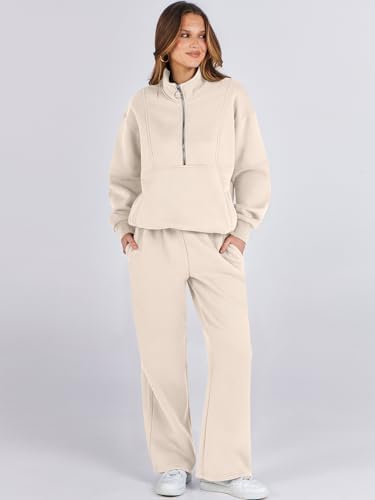ANRABESS Women 2 Piece Outfits Sweatsuit Oversized Half Zip Sweatshirt Matching Wide Leg Sweatpant Lounge Set Fall Tracksuit