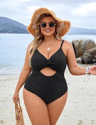 Plus Size bathing suits featured with removable padded push up bra and twist front design, provide you sturdy support and shaping.