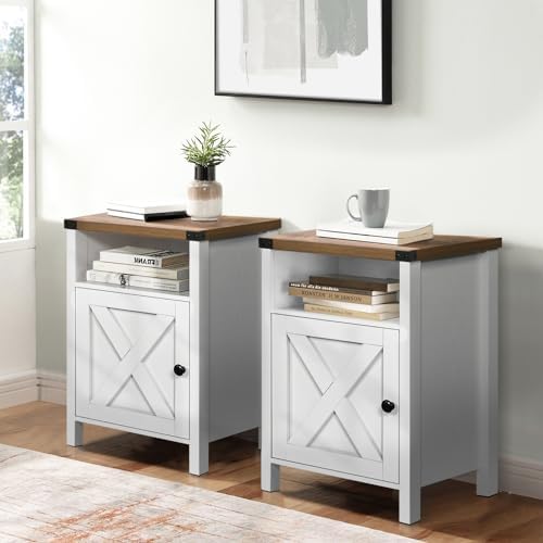 Farmhouse End Table Set of 2 Farmhouse nightstand set of 2 have unique appearance in white adds a farmhouse style to your living room or bedroom.