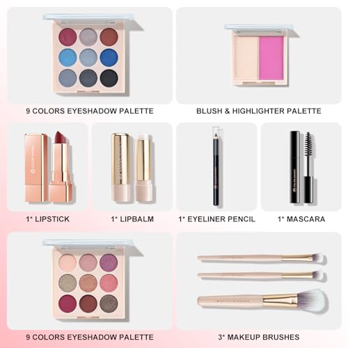 Color Nymph Beginner Makeup Set, Full Starter Cosmetics Set for Teenager Girls with Eyeshadow Palette Blush Lipstick Lip Pencil Eye Pencil Brush Mascara Portable Bag